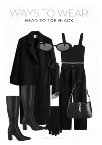 One of the reasons I love an all-black outfit is its versatility and simplicity. Black flatters every shape and size and pairs well with any accessory, allowing you to add pops of color or metallic accents if you wish. I also find that all-black outfits work well for every occasion, from casual to formal, letting me dress up or down with just a few tweaks.